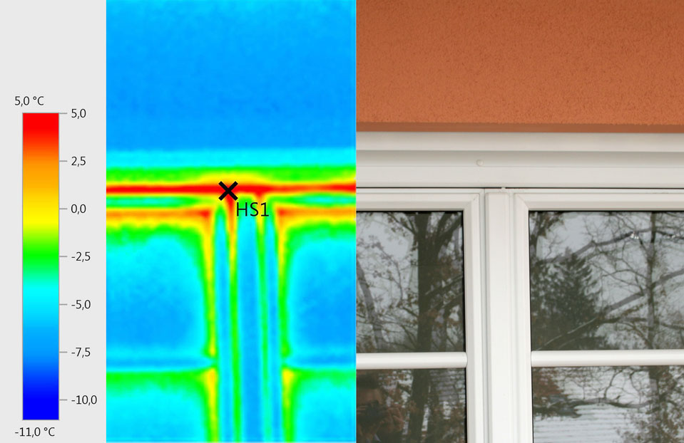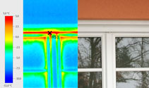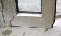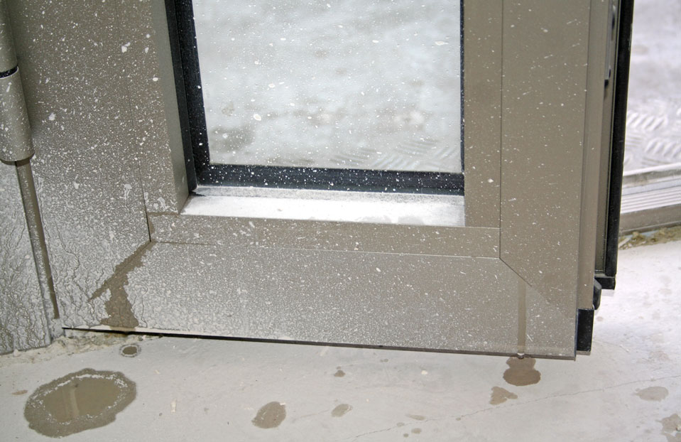 Punktuelle raumseitige Abkühlung und Zugerscheinung im Winter. Erhöhte Kondensatbildung an der Konstruk-tionsfuge zwischen Flügelrahmen und Blendrahmen.