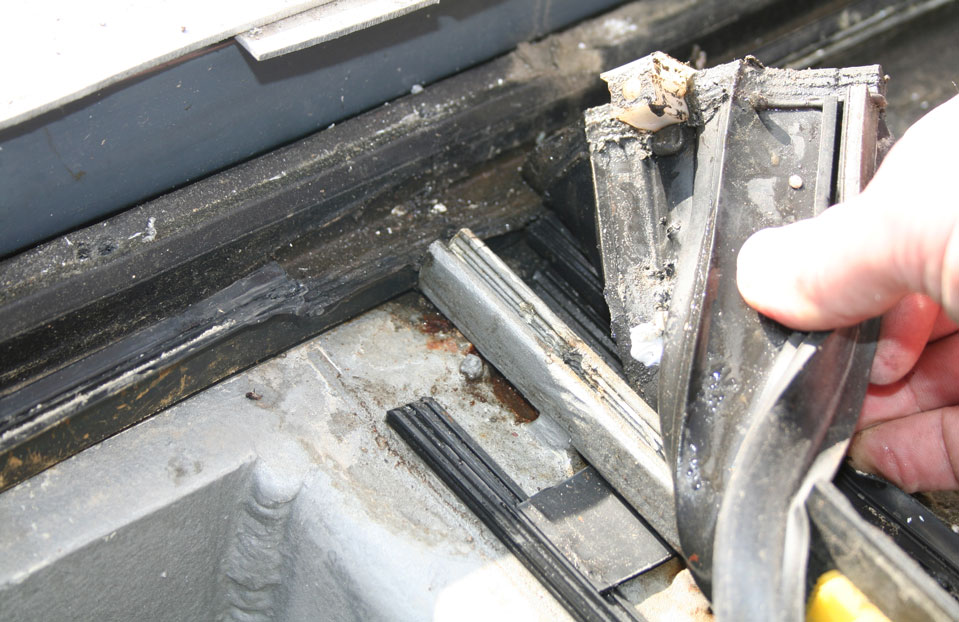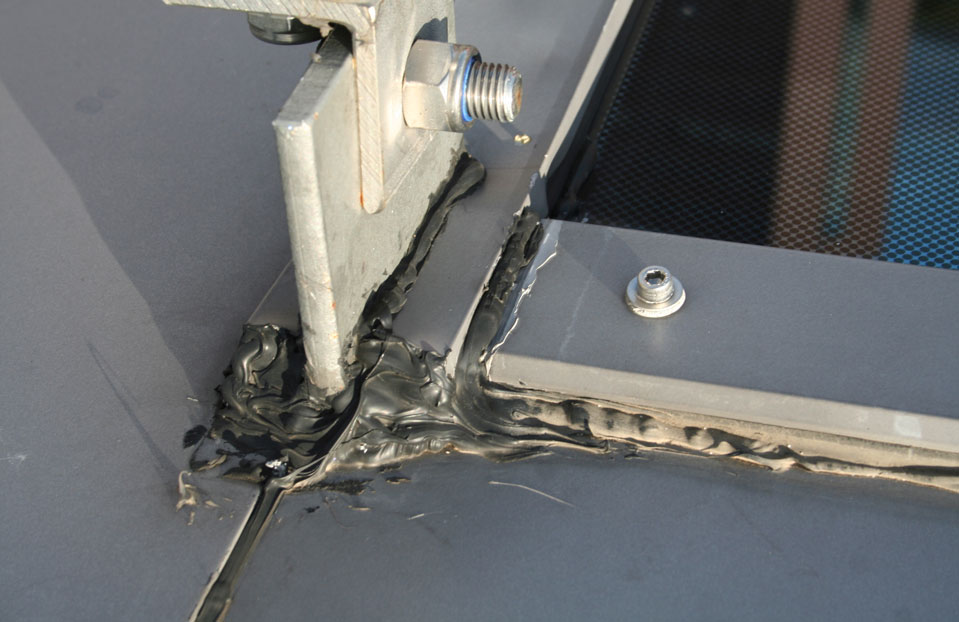 Der Stoß der inneren Verglasungs-dichtungen wurde mit einem untauglichen, in den Hersteller-Verarbeitungsrichtlinien nicht vorgesehenen Dichtstoff abgedichtet. Der verwendete Dichtstoff verbindet sich nicht mit den aus EPDM bestehenden inneren Verglasungsdichtungen.