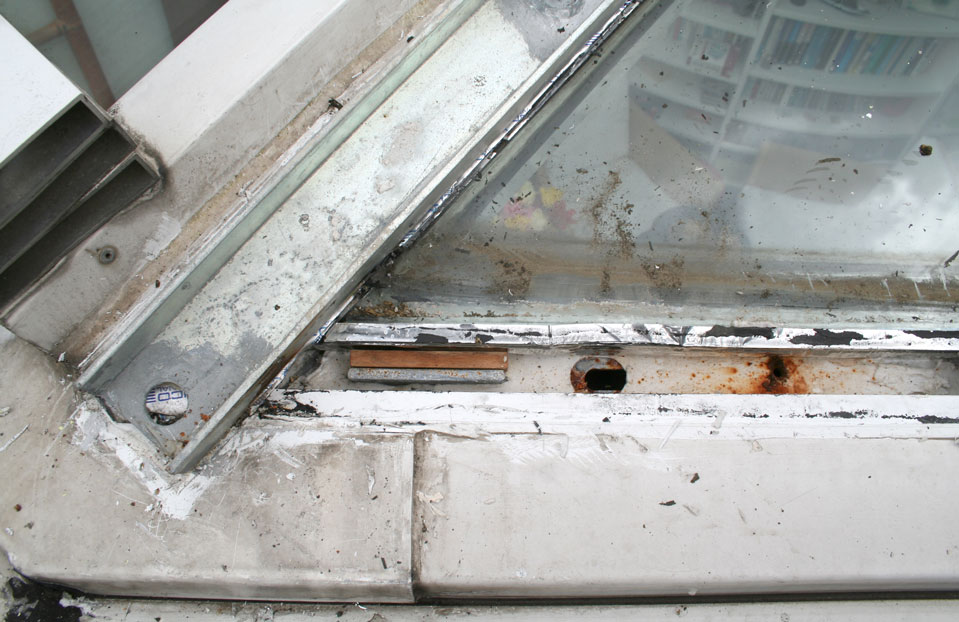 Undichter Pfosten-Riegel-Stoß an einem Lichtdach