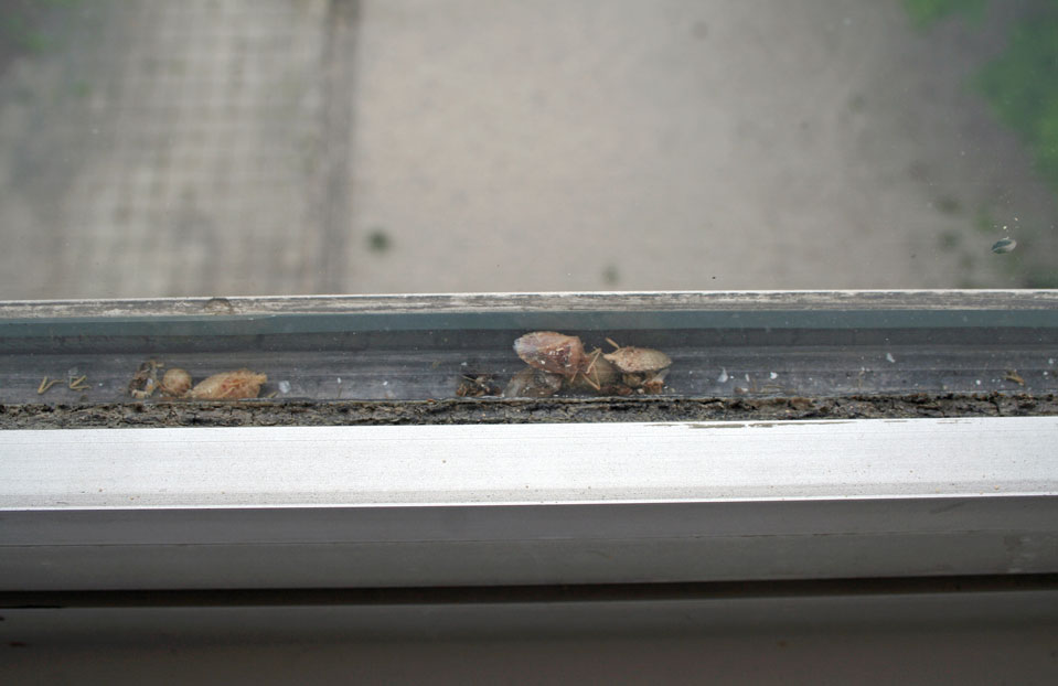 In den Scheibenzwischenräumen befindet sich totes Ungeziefer.
